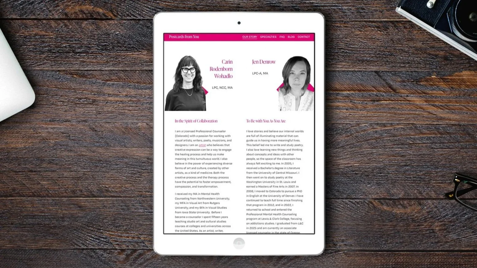 Postcards from You needed a website that reflects the heart of their work: counseling for artists, writers, and creatives. The design distills their therapeutic approach — warm, direct, spacious, and grounded — into a clean, modern site architecture that is easy to navigate and aesthetically artistic. A vibrant palette and thoughtful typography create a unique visual environment, while a carefully structured service page offer clarity around specialties. The site’s layout invites visitors to linger, with intentional negative-space and vivid paintings that mirror the practice’s emphasis on presence, listening, and creative process.